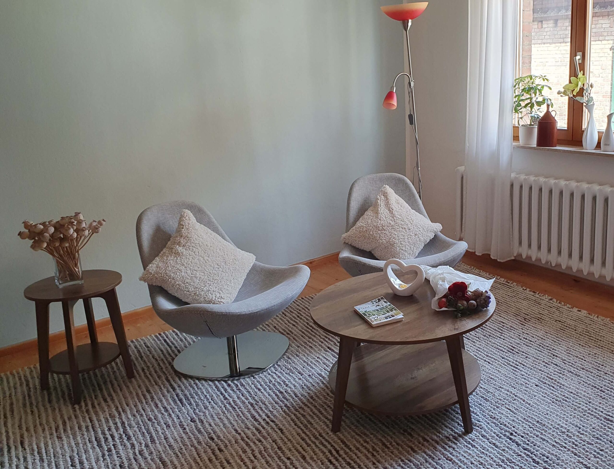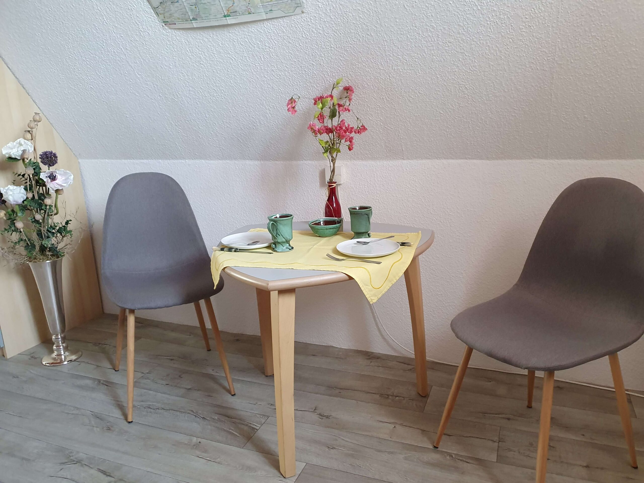 Wir bieten Ihnen eine 50 qm große Gästewohnung, die gemütlich eingerichtet ist. Sie besteht aus einem großen Doppelzimmer, einem Wohn – Koch – Bereich mit Schlafsofa und Bad mit Dusche und WC. Die Ferienwohnung befindet sich in der ersten Etage. In der Pantry – Küche mit Kühlschrank und Zweiplattenherd können Sie sich selbst verpflegen. Eine Kaffeemaschine, Wasserkocher und grundlegende Haushaltsgeräte sind vorhanden.