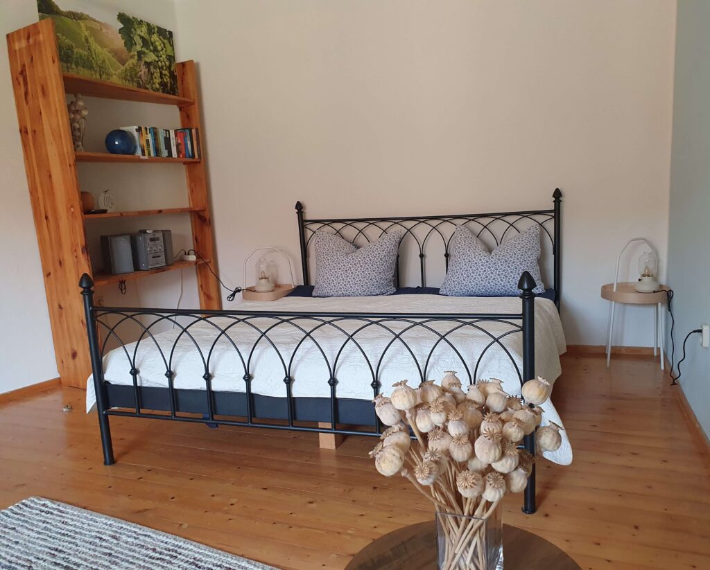 Das Doppelzimmer, 20 qm groß, befindet sich im 2. Obergeschoss. Es kann separat oder als Aufbettung zur Ferienwohnung gemietet werden.