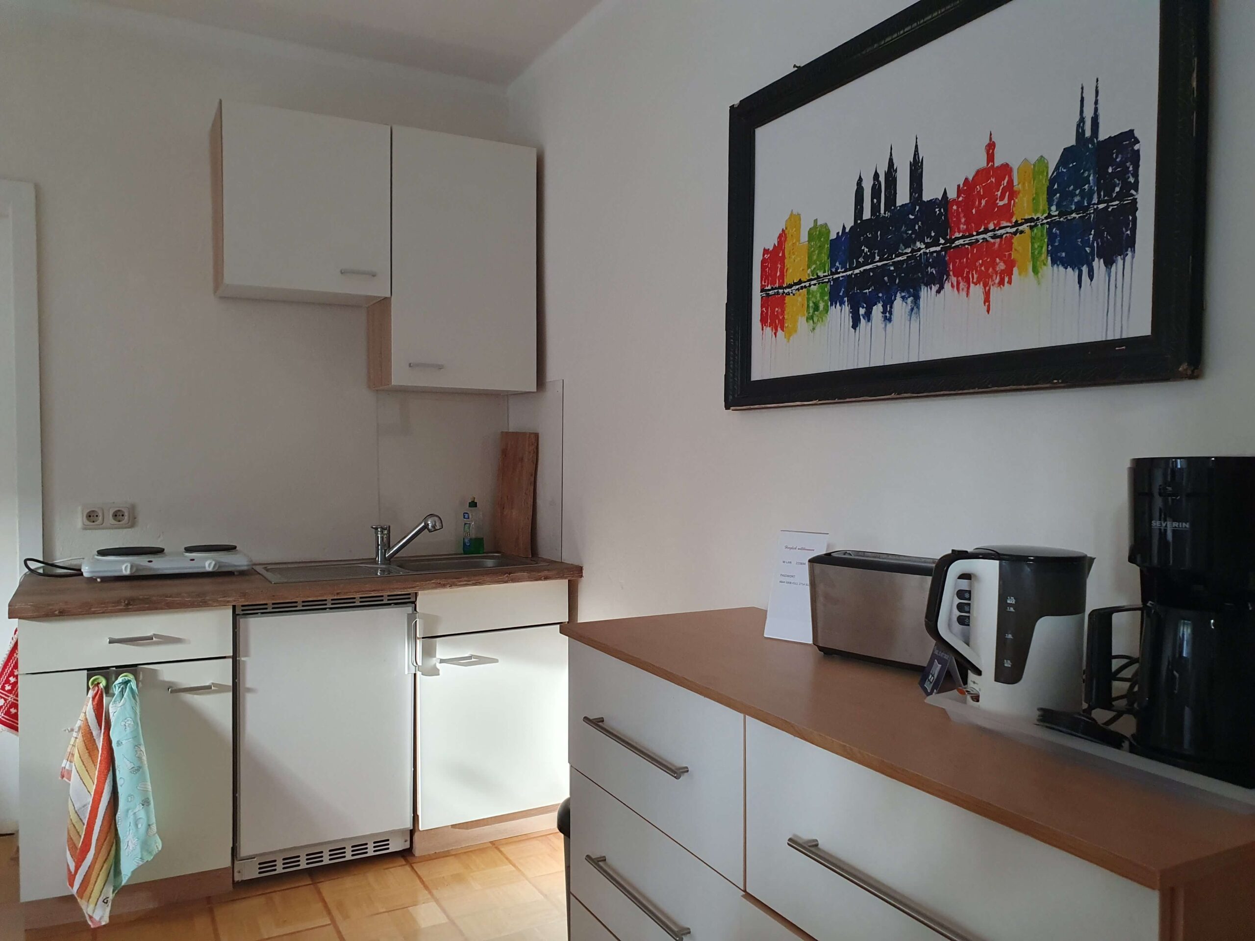 - Minikühlschrank, Wasserkocher, Kaffeemaschine
